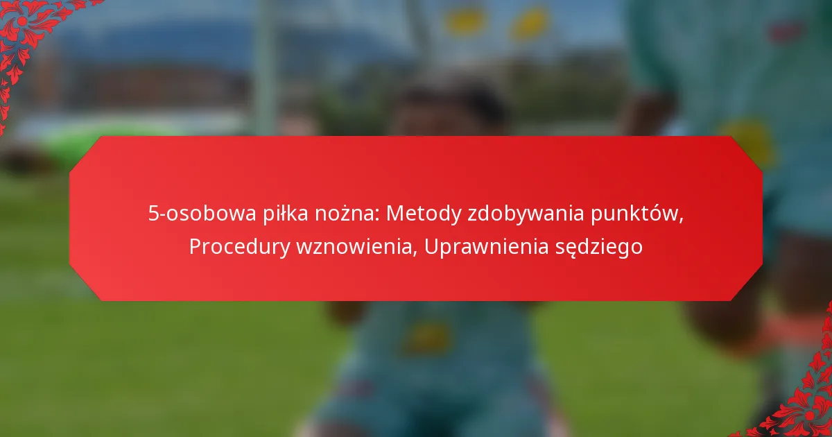 Piłka nożna 5-osobowa charakteryzuje się unikalnymi metodami zdobywania punktów, które polegają na umieszczeniu piłki w bramce przeciwnika, podobnie jak w tradycyjnej piłce nożnej, ale z odmiennymi zasadami. Procedury wznowienia gry po zdobyciu gola lub gdy piłka opuści boisko są zaprojektowane w celu utrzymania płynności i efektywności gry. Sędziowie odgrywają kluczową rolę w tym formacie, zapewniając uczciwą grę i przestrzeganie specyficznych przepisów regulujących mecz.